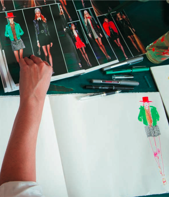 Фэшн-иллюстрация — это возможность рисовать узоры, геометрические формы, текстуры и использовать яркие цвета. Играя с разными фасонами и стилями, мы можем заглянуть в другой мир. Подобные наряды вряд ли появятся в наших шкафах, но мы можем примерить их в своем воображении. Это похоже на игру в куклы.
