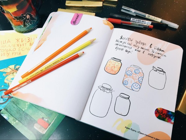 Закатайте чувства в банки. Нарисуйте еще пару банок. Вы сможете полакомиться ими следующей зимой 😉