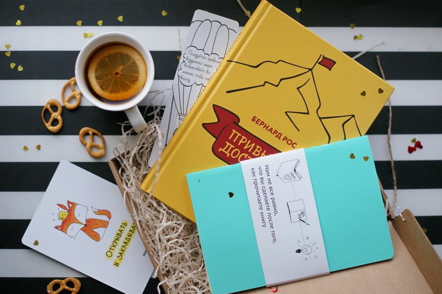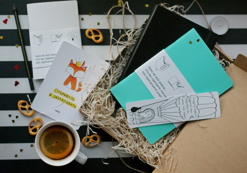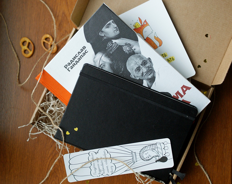 Перед Новым годом мы впервые сделали подарочные комплекты книг: с любовью упаковали лучшие издания в крафтовые коробки и добавили несколько приятных мелочей — милую открытку, закладку, блокнот.