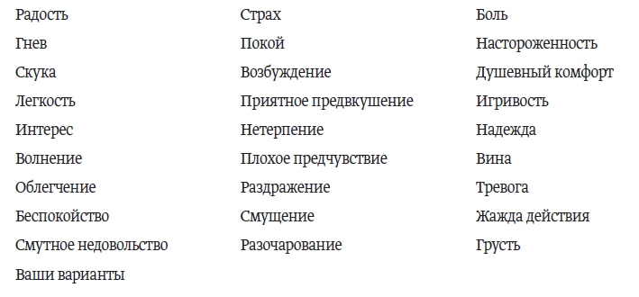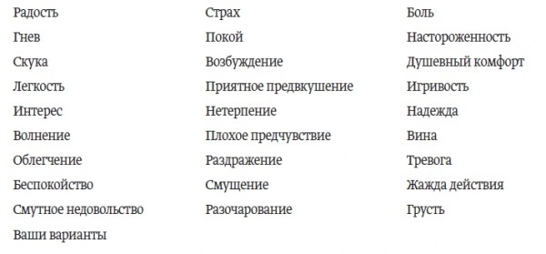 Чтобы было легче разобраться в себе, составьте каталог эмоций. Отмечайте галочкой то чувство, которое испытываете.