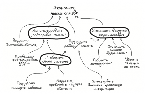 Существует несколько способов экономить мыслетопливо. Думаю, если до этого вы научились использовать ту или иную систему тайм-менеджмента или просто научились следить за своей продуктивностью, то многие моменты вам знакомы.