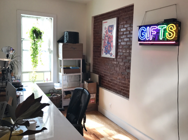 Я хотел бы по-настоящему вдохновляющую, будто сошедшую со страниц сайта Pinterest студию-мечты: с очень высокими потолками, очень светлую, с кирпичом, выкрашенным в белый, с отдельными зонами для товаров и их производства, с зоной для приема гостей, встроенными книжными шкафами, разными растениями (заниматься которыми будет кто-нибудь другой), с балками под потолком, пространством, чтобы работать с принтером Riso и доступом к грузовому лифту.