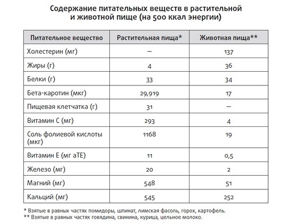 Все продукты, которые мы едим, действуют в комплексе, способствуя здоровью или болезни. В растительной пище содержится гораздо больше антиоксидантов, клетчатки и минералов, чем в животной. Животные продукты почти полностью лишены некоторых из этих питательных веществ. В них гораздо больше холестерина и жиров, больше витамина D, что обусловлено его искусственным добавлением в молоко.