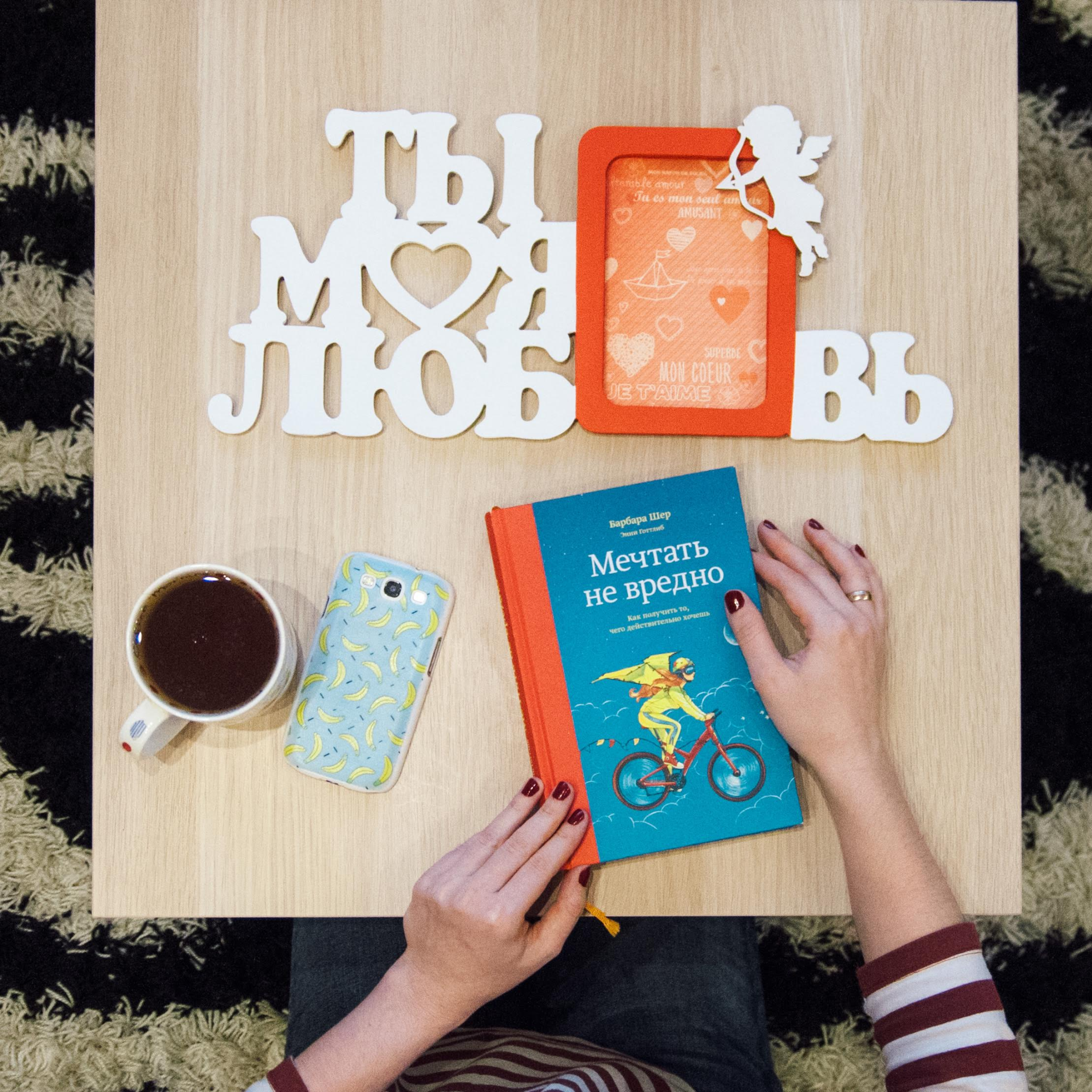 Во время очередного рейда по сайтам в поисках книг я рассматривала детские книги МИФа и книги по саморазвитию и вдруг в списке рекомендованных книг увидела одну книжку с яркой синей обложкой, на которой была девушка с крыльями, летящая на велосипеде. Я заинтересовалась и перешла по ссылке. Мир не перевернулся, и я не перевернулась тоже. Я скептически прочитала отзывы, пофыркивая в сторону, что объем книги в 300 страниц можно было уместить в десять. Но отзывы были так заразительны, а я так хотела поверить, что эта книга именно то, что поможет мне. К тому же девушка с обложки по прежнему летела куда-то навстречу своим мечтам, и судя по названию книги, она должна была туда обязательно долететь:) В итоге я заказала эту книгу.