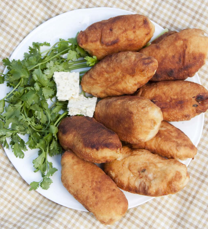 6. Выкладывать начинку на середину кружочков из теста и формовать пирожки. Жарить их на масле на разогретой сковороде. Пирожки должны подрумяниться с двух сторон.