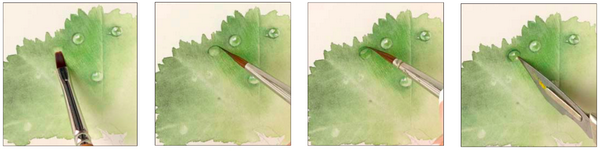 Капли воды оживляют рисунок. Рисовать их гораздо проще, чем кажется, и очень интересно. Используйте кисть No 2 с очень тонким кончиком. Прежде чем приступить к рисованию, тщательно рассмотрите свет, цвет и тень на реальной капле воды.