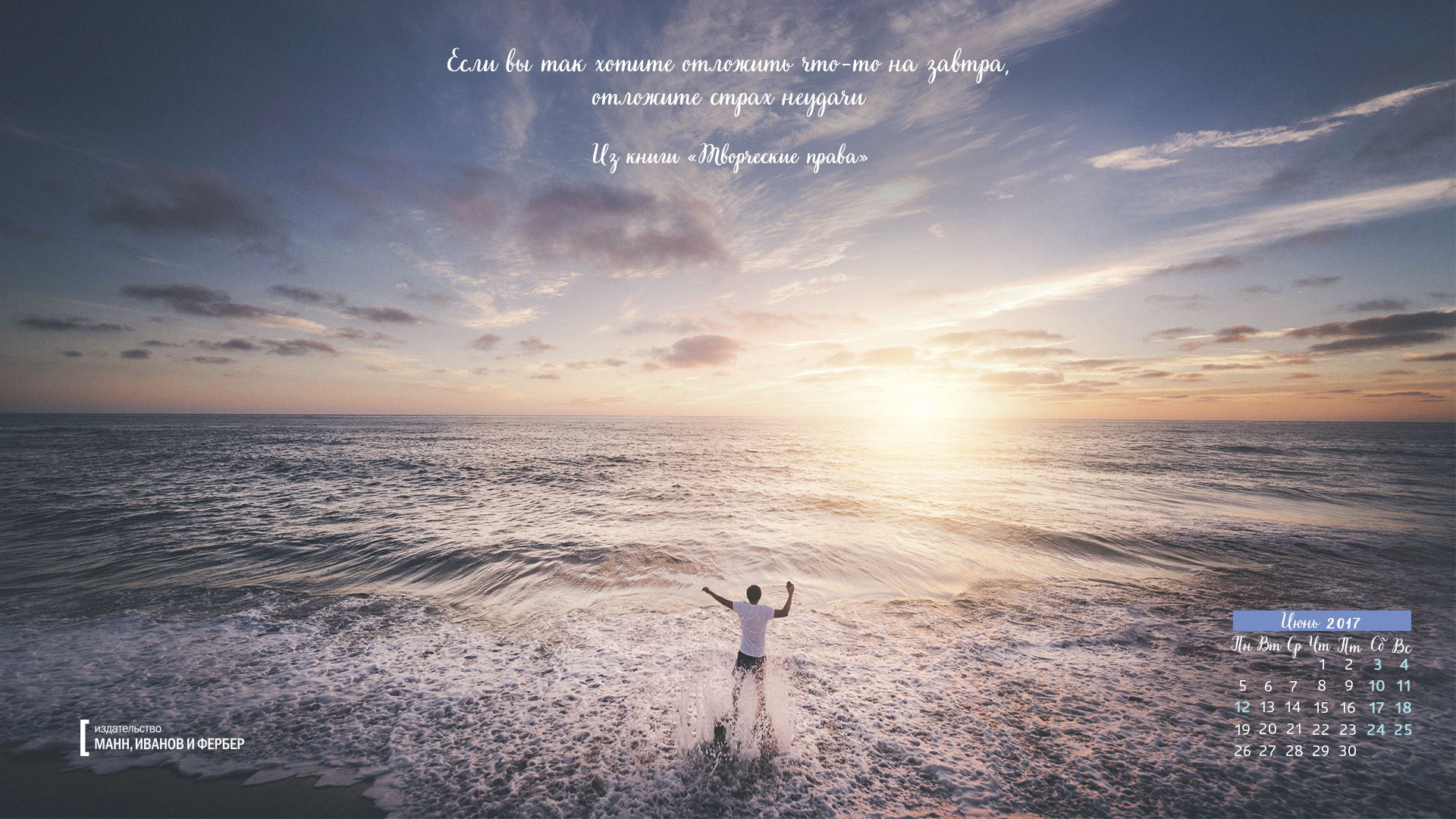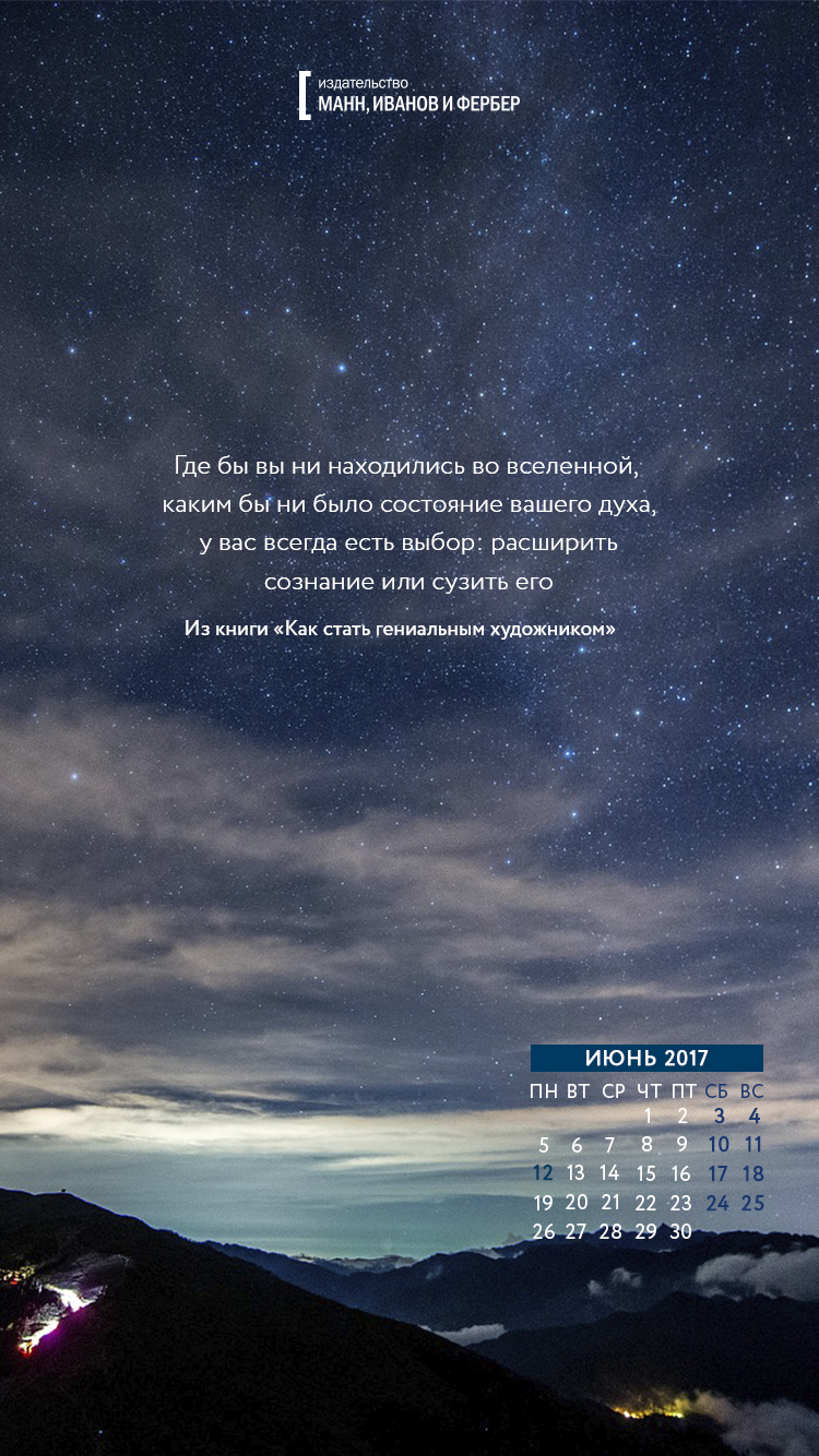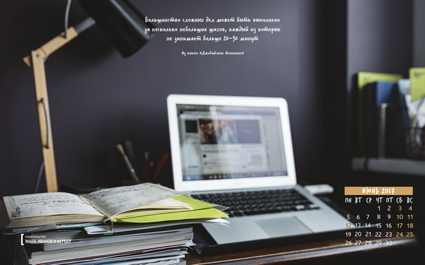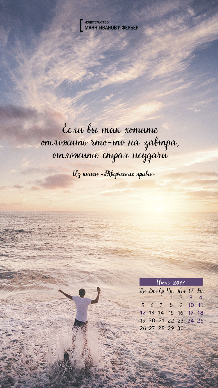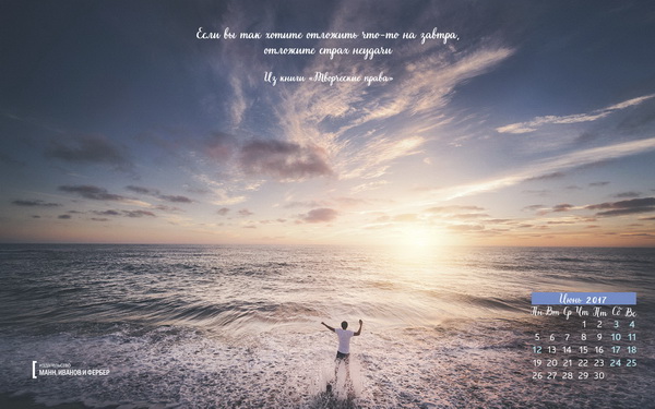 Друзья, подготовили для вас семь вдохновляющих обоев на июнь, которые вы можете скачать и установить себе на рабочий стол, планшет или экран смартфона. Цитаты будут напоминать вам о целях, а календарь позволит быстро сориентироваться во времени и пространстве.