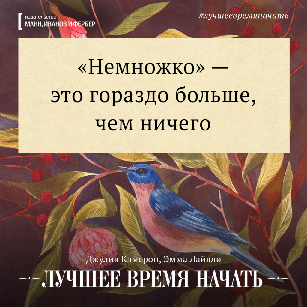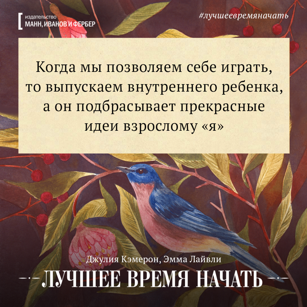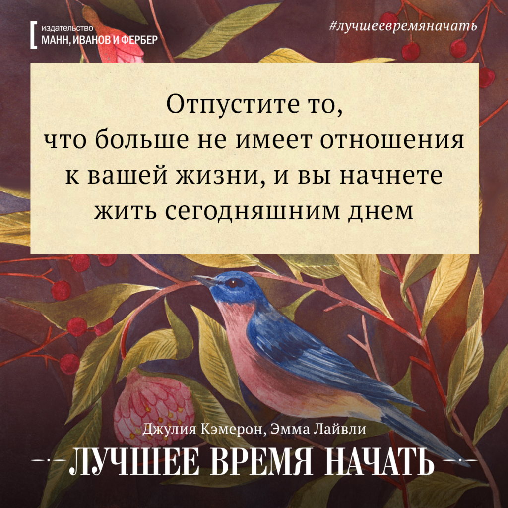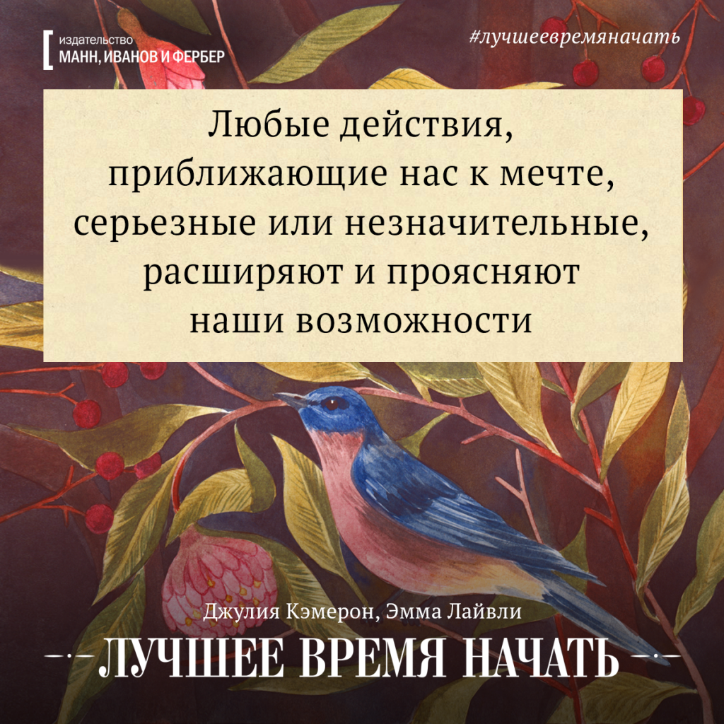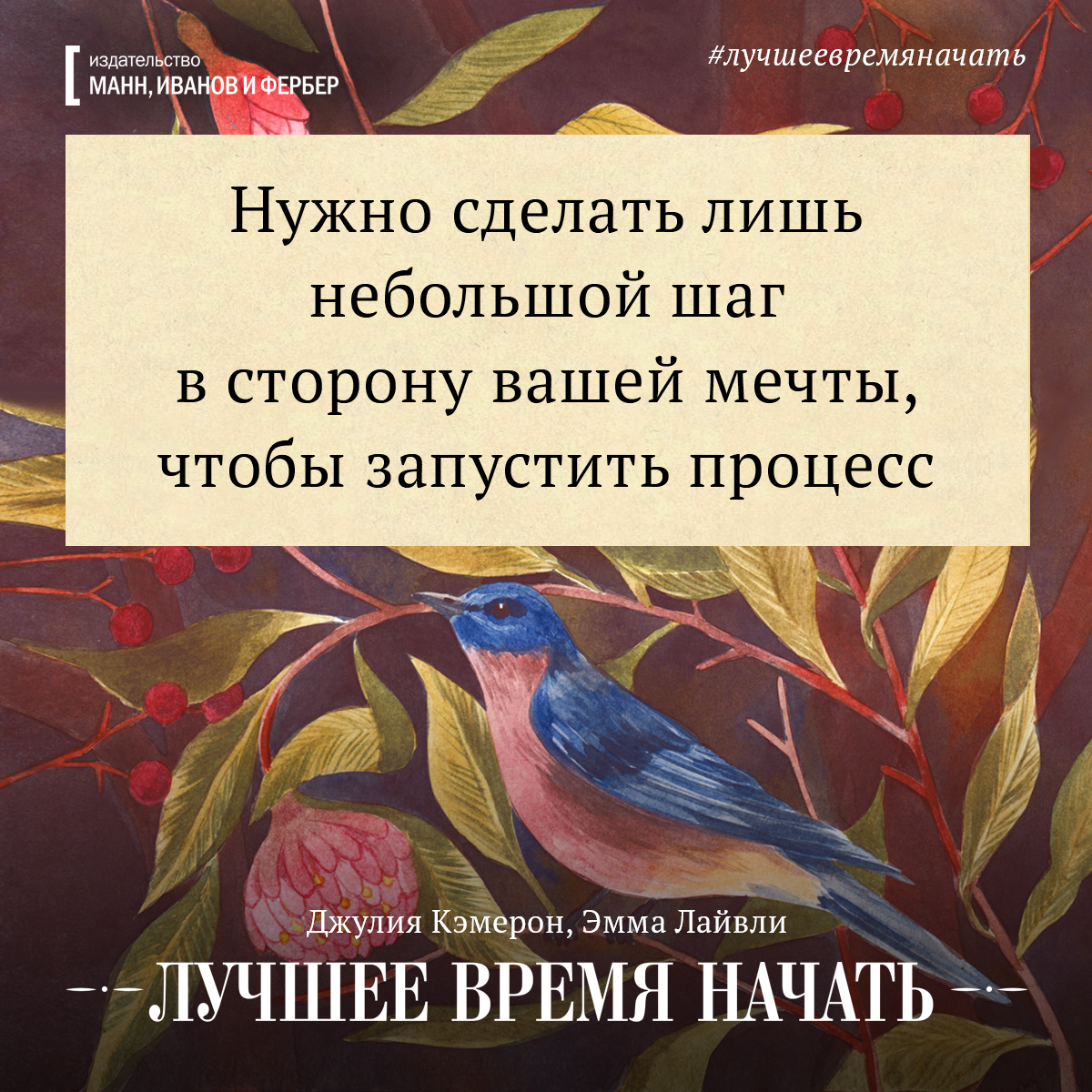 Пенсионный возраст вполне может быть самым богатым и насыщенным периодом жизни. Развитие творческой стороны личности помогает стать счастливее и уверенно ступить на новые, неизведанные земли. Об этом рассказывает эксперт по креативности Джулия Кэмерон в своей книге «Лучшее время начать». Мы выбрали несколько мудрых мыслей автора и сделали красивые открытки. Смотрите, вдохновляйтесь, делитесь со своими близкими.