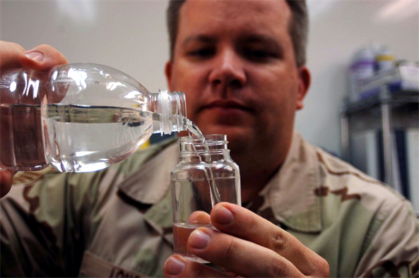 4. Теперь вылейте всю воду (все три чашки) из сосуда В и заполните его опять из сосуда Б.