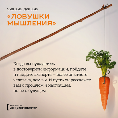 К счастью, братья Чип и Ден Хиз провели исследование и выяснили: не важно, в какой сфере вам нужно сделать выбор — этот процесс всегда идентичен. И ловушки на этом пути — тоже одинаковые. Важно вовремя их заметить. О том, как это сделать, они рассказали в книге «Ловушки мышления».