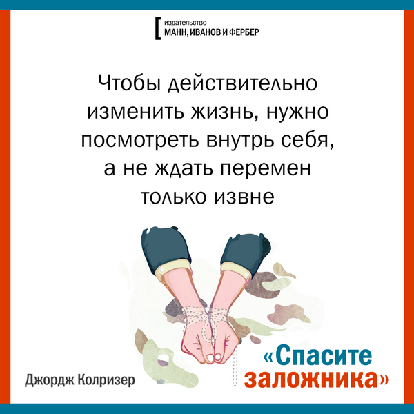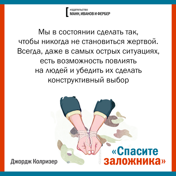 Есть книги, которые время от времени стоит перечитывать. «Спасите заложника. Как разрешать конфликты и влиять на людей» — одна из таких, экспонат золотой коллекции МИФа. Подготовили набор открыток с важными цитатами, глубокими и многогранными, как сама книга. Читайте, обдумывайте, делитесь с друзьями.