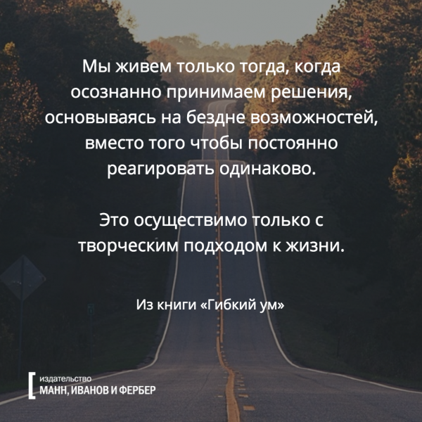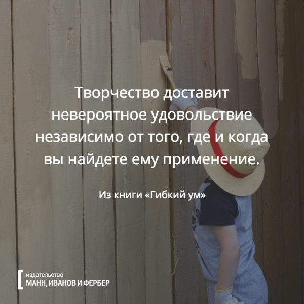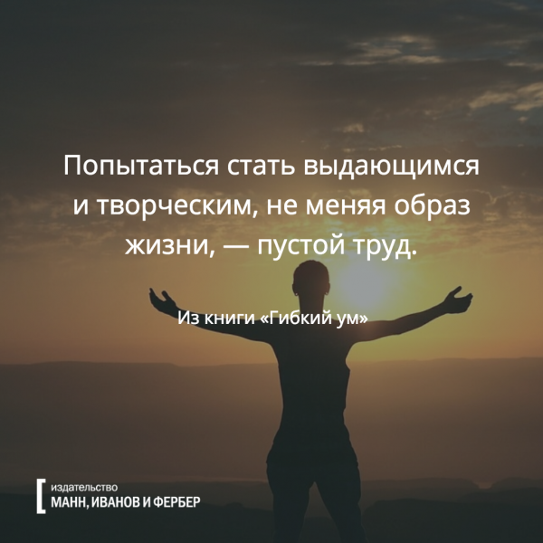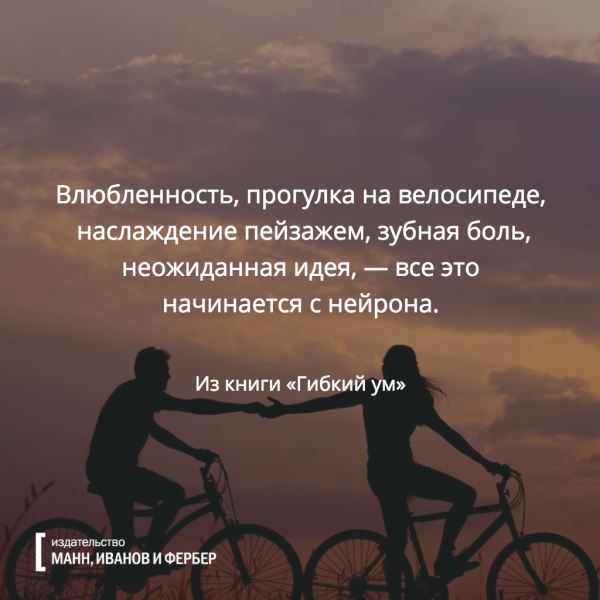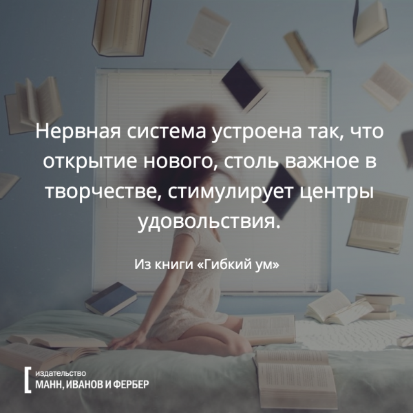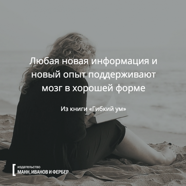 Мы привыкли думать, что творческие способности ухудшаются с возрастом, но это не так. Мозг способен к регенерации и обучению до последних дней жизни. Книга «Гибкий ум» развеивает все предрассудки, касающиеся функционирования мозга, и демонстрирует, как работают скрытые творческие процессы, а главное, помогает их усовершенствовать. В книге много упражнений и советов по развитию мозга. Подготовили для вас открытки с цитатами из книги.