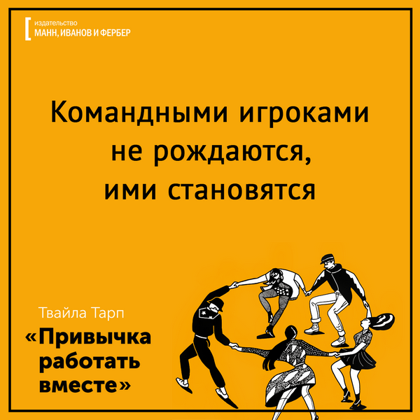 Твайла Тарп делится внушительным опытом сотрудничества — удачного и не очень. 200 страниц ярких, показательных примеров, в которых она задевает сложные вопросы: работа с виртуальными партнерами, с теми, кто выше вас по статусу, работа с «ядовитыми» партнерами и в условиях, когда все выходит из-под контроля.