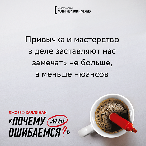 Есть книги, которые стоит время от времени перечитывать. Поэтому мы время от времени их переиздаем 🙂 Одна из таких книг — «Почему мы ошибаемся». Ее автор коллекционирует ошибки. И рассказывает нам о том, почему нас обманывает собственный мозг и как обойти эти ловушки, чтобы принимать правильные решения.