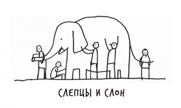 В этой притче все понятно, ведь мы знаем, что все эти люди слепы. Никто из них не видел слона целиком. Но речь не о том, что слепые не видят; суть в том, что все мы слепы.