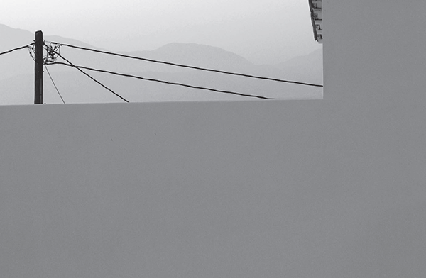 При приближении на передний план выходят столб и электрические провода. Большой монохромной площади здания противопоставлена тонкая линия проводов, а их темный силуэт образует резкий контраст света и тени.