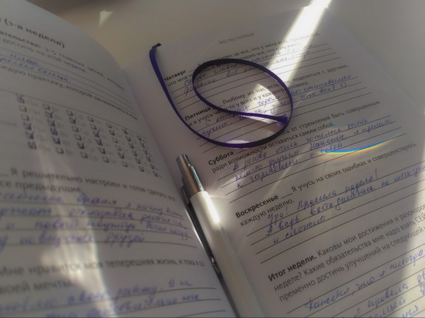 И последний «спасательный круг» — письмо. Каждое утро уделяйте время записям в дневнике, это позволяет запечатлевать мысли, идеи, озарения, достижения, успехи и выученные уроки, а также любые направления для благоприятных возможностей, личностного роста и самосовершенствования.