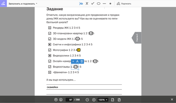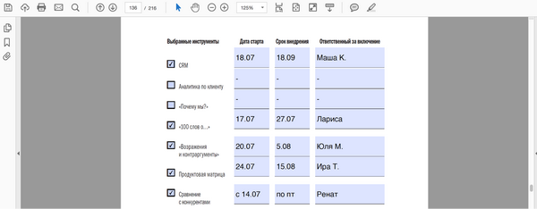 Второй вариант проще, потому что мы все для вас уже разметили, не нужно дополнительно открывать инструмент «Заполнить и подписать». Просто заполняйте, нужные поля подсвечены. Например, в книге «Инструменты маркетинга для отдела продаж»: