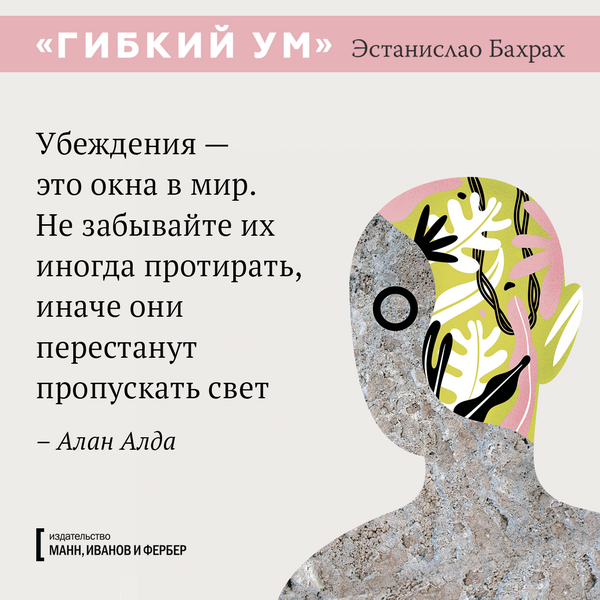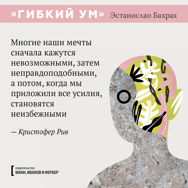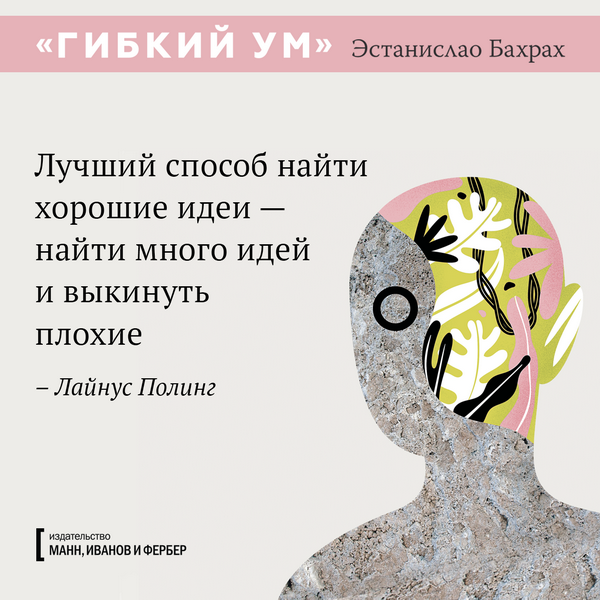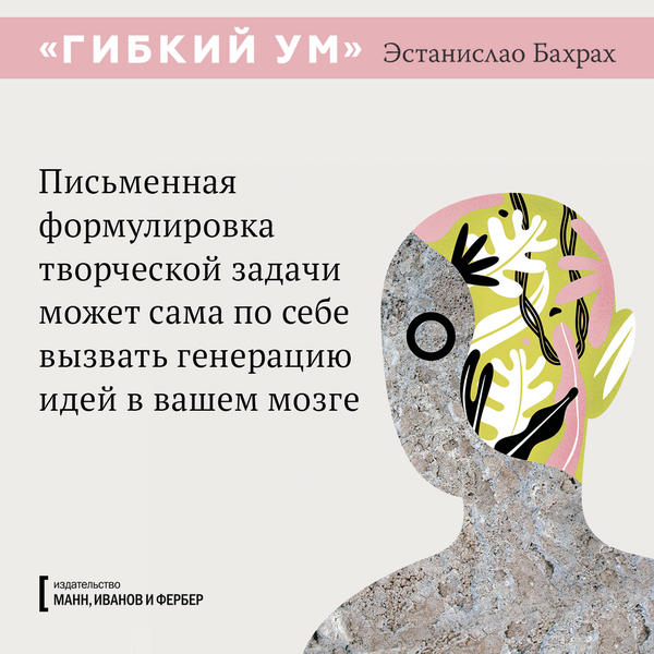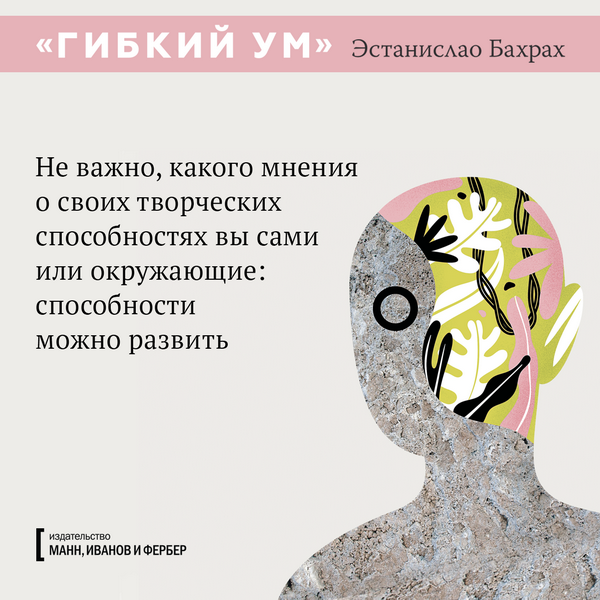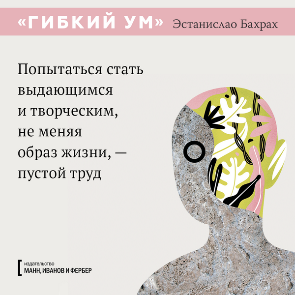 Каждый может стать креативнее, если будет использовать правильную методику, применять техники стимулирования мозга и расширять кругозор. Где взять эти техники? Например, в книге «Гибкий ум», которая в Аргентине вышла громадным тиражом в 200 000 экземпляров. Теперь мы тоже ее издали — и вы можете познакомиться с последними научными исследованиями мозга и приемами развития творческих способностей. А пока подготовили открытки с любопытными цитатами из книги.