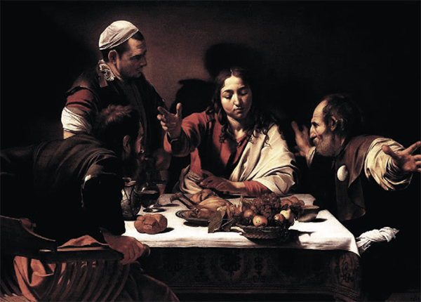 Никто из учеников не смог ответить на вопрос. Тогда учитель объяснил, что сидящие за столом фигуры образуют круг: они занимают одну сторону, а мы (зрители) замыкаем его. Это создает эффект сильного притяжения. На этой картине Караваджо стремился не к фотографической точности, а к абсолютной взаимосвязи между искусством, художником и зрителем.